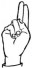 На ћирилици написано РУМЕНА БАЧАНИН састоји се из 13 слова [?]. Исписано ћириличном једноручном азбуком за глувонеме: